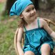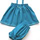 The aqua green baby set, composed of a flared top and a bloomer, has beautiful green and golden trim to make it more stylish. Top with thin straps and elastic at chest. Bloomer elasticated at waist and hem to adjust to your baby.