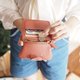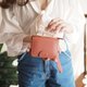 带有前盖和磁性闭合的拉链钱包。触感柔软的皮革。外形纤薄,但容量充足。可用作备用钱包,放置车钥匙和小化妆品。或者当您携带的东西不多时可以将其用作主钱包。这款设计可爱的皮夹绝对是您的最爱。