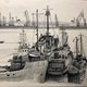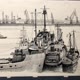 焦点是一群船只,绘制的细节令人难以置信,展示了索具、烟囱和甲板等元素。这种视角将观众的目光从最近的船只吸引到开阔的水域,并进一步吸引到工业天际线。每艘船都经过独特渲染,突出了其功能和机械的复杂性。