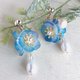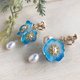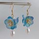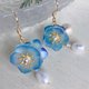 - This is a lovely earring with a Baby blue eyes flower image that sways around your ears. A freshwater pearl is also added for an elegant look. The flowers and leaves are made of 3D shrink plastic, and each piece is colored and molded by hand.