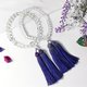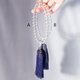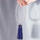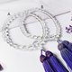 遵循日本传统**日本念珠(数珠 じゅず)**端正而庄雅的造型语汇,严选天然顶级**白水晶**佐紫色绢流苏,细致展现**台湾工艺美学 × 日本礼仪文化**的和谐融合,并承载**台日友好**的深厚底蕴。