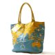 在世界地图托特包上,用图示别针进行标记。提供 绿松石 与 砂米黄 两色。