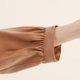 - 特殊设计:修身版型、双层造型领片、同款面料订制包扣、袖身立体抓褶及细褶设计。
