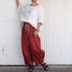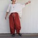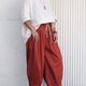 isica 的腰间蝴蝶结绑带茧形气球裤。使用硬挺帆布制作,适合天天穿搭。