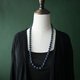 由包着深蓝丝质和金色小塑胶珠串成,颜色很美质感还不错,蛮有气质的~很适合复古打扮,平日穿搭,参加舞会等都很适合~或是要自己DIY做什么饰品或装饰都可以唷~不可调,无扣具,中间是浆过的棉线,有几颗丝质有毛毛的翘起,不明显。