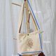 這款肩背包採用100%天然純棉(原色棉布)製作,內外皆為純棉材質,並以精緻刺繡點綴,展現樸實卻富有魅力的手工風格。