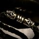 皮革编织穿入两颗特制骷颅头+纯银段敲手环,选用植鞣皮绳纯手工编织完成,加上999纯银段敲,皆可定制