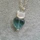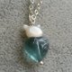 10MM heart-shape flourite with cat shape mother pearl 925 silver necklace