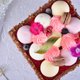 使用食材:法国进口发酵奶油/鲜奶油、新鲜鸡蛋、杏仁角、牛奶、砂糖、比利时73%巧克力、莓果果酱、白酒、新鲜洋梨、吉利丁。