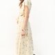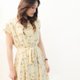 复古早春日本制甜美浪漫花朵碎花米黄色短袖古着洋装-D359