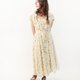 - 复古早春日本制甜美浪漫花朵碎花米黄色短袖古着洋装