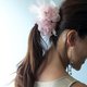 花漾编织发圈,是用撕裁后产生羽毛边的欧根纱,仔仔细细地编织而成。可以看出细腻的工法,是十分耐用的编织品。充满空气的蓬松感,即使放入包包里被压着或着被水泼到也不会弄坏。