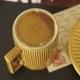 老英国制咖啡色陶瓷直纹杯子盘套组 咖啡茶