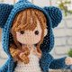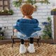 她身穿蓝熊连帽卫衣,可以站起来了,身高7厘米。