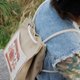 - 以早期卡箕袋为概念,用来装酱油、农药、酒矸仔...等,是阿嬷青春时期用的购物袋。搭配多功能背法,可肩背、后背、侧背、手提,变换绳子穿梭出多种背法,自己动手乐趣多!!