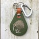 - 这款钥匙圈配有登山扣和手工刺绣的 Kiwi(一种来自新西兰的不会飞的雀)吊饰。