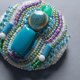 制作小巧作品时,首先会挑选主要的珠饰。为了让这颗主珠展现最美的姿态,便会将刺绣一针一针地叠加,不留一丝空隙——色彩缤纷的珠饰们,便如同在低语交谈般,营造出热闹而生动的氛围。
