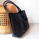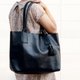 Hand-stitched Black Leather Handbag / Handmade Weekend Bag