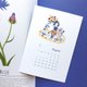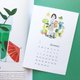 - 年历尺寸是 A6 大小,和明信片一样迷你,里面有 13 张不一样的插画作品,还有附上一个小木架,可以把年历放在桌上,不占空间又漂亮~