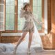 - 蒸汽朋克 复古 朋克 白色皮革 蝴蝶结 腰带 腰封 外搭叠穿 背带