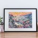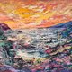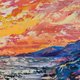 Oil painting of the author's "Sunset boat trip", oil on mdf panel, size 12 in*of 16 inches.