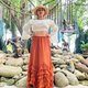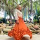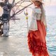 - 长裙采用全松紧腰部和抽绳、分层荷叶边和毛边流苏