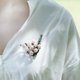 佩戴时避免正面指压花朵,以免花朵变形。需用右手抓住花杆,左手拨转针头开口,插针时请小心,戴好后再拨转针头闭合。