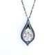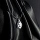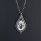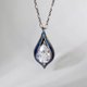 纯银吊坠采用流线型水滴框架设计,并烧附一层热珐琅,呈现蓝色渐变阴影等油画效果。 镶嵌一颗浅蓝色,近白色和高闪烁的海水蓝宝为特色,俐落且优雅大方。