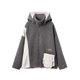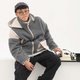 灰白地带的雪地外套,一面是羊毛羔拼接缝制,一面是舒服的赖兔毛,可拆卸帽子,便利保暖