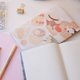 Take notes or write things with pastel colored books. Made from imitation leather, cute print, designed by Thai artist FAHFAHS With unique stripes