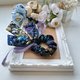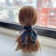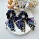 使用两款不同的美国品牌棉布搭配制作成长尾蝴蝶结、加上缎带和钉珠做成的发圈,气质浪漫,无论上班或休闲聚会都适合配戴。