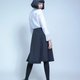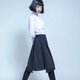 - A字版型、棉质混纺、特殊裁片、异材拼接、侧开拉链、下摆不对称。