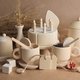 有了儿童餐具套装,您可以想出许多不同的故事角色扮演游戏:在蒙特梭利厨房套装上为您最喜欢的娃娃和玩具准备零食,邀请您最好的朋友来访,并用蜡烛蛋糕安排假期。
