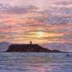 湘南七里滨的夕阳大海中漂浮着江之岛的梦幻剪影。