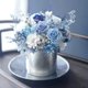 这款桌花使用日本大地农场有机永生不凋玫瑰/不凋绣球,使用了8朵不凋花,是高雅而不失礼节的花礼。蓝色色系是平静安详且有智慧的配色,搭配其他不凋花叶材,好好照顾可以观赏3年以上喔~