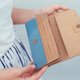 - ER长夹极简俐落的帆布外层, 与环保耐用的水洗牛皮纸内层, 重量只有85g超轻巧。 不使用动物成分材料制作,送礼自用皆适合。