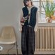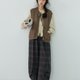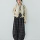 【日杂晕染复古绿格磨毛触感打褶灯笼裤】