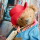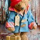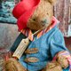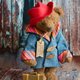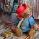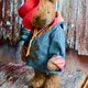 - Intelligent-looking bear. Fluffy Migratory Bear ready to Travel. Well-fed, well-mannered, weighty, with a good temper. Made of soft brown German mohair, stuffed with sawdust. The Bear is sporting removable denim coat and red felt hat. His leather suitcase is always ready for travels and new adventures! Can stand on its own. Fastening - 5 splints. 28 cm