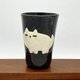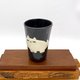 黑色陶土上有一只白猫,一只黑白色调的陶杯。