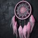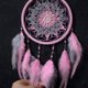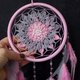 This colorful dream catcher consists of wooden ring wrapped with yarn. Gray and pink colors make it perfect to be hung in any room of your home, espessially it will looks great as wall hanging bedroom decor or nursery wall hangings or decoration of girly kids room.