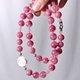 链身以玫瑰石为主调,**塔珠**(大至小)设计,点缀**顶级高瓷度女皇贝**玫瑰、银钻饰,红粉、银白掩映,当环绕胸前,充分展现女性**端庄富贵、雍容典雅**之情,是**喜爱玫瑰石的藏友们值得收藏**的臻品^^。
