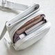 包身与背带连接处采用可旋转的特殊五金,让Sora可以在腰包与肩背包间自由切换。 此五金可以360度旋转的特性,也让包包背起来更加贴合身形,是一款使用轻便、易于活动的两用包。
