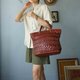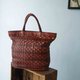 →超质感编织红棕色真皮,皮革状态保存良好无破损,局部侧边包体有使用折痕(如图)