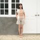 Tan Plaid Round Neck Short Sleeve Blouses Hand Woven and Botanical Dyed Cotton