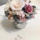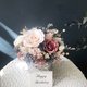 这款桌花使用日本大地农场有机永生不凋玫瑰/不凋绣球,莓果粉色/白色/浅蜜桃粉+烟熏粉黑灰色系是温柔成熟的配色,搭配卡斯比亚籍由加利叶整体会有淡淡的花草清香,好好照顾可以观赏3年以上喔~若需做成捧花请来信定制报价喔~