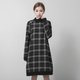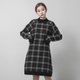 - 修身版型、毛呢材质、格纹对称纹路、腰部调整扣设计。