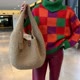 时尚现代手工编织大号钩针包 - 双色麻线设计。LunarcatStore 独家设计。为您的日常穿搭增添此配件,展现个人风格与心情。