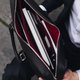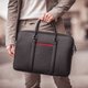 时尚优雅的公事包选用质感丰富的头层十字压纹皮革制造,以隽永的黑色为主色调搭配耀眼夺目的帝王红内衬,彰显你的时尚前卫风格。精心设计的内格妥善放好15' Macbook Pro 或其他15.6' 电脑,智能电话,商务名片及书写工具。配备磁扣的内袋把重要物件安全收纳。配上轻易调较的肩背带,让你轻松自信地穿梭都市。