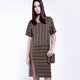 mystatice 当代短袖条子小叉洋装连衣裙, 由横直条子以并布方式组成,充满时尚感。
