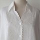 复古几何刺绣领宽松欧美版型长袖白色古着衬衫-T104